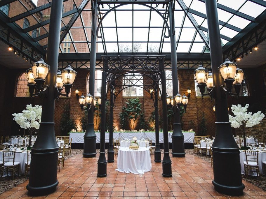 Specialized hospitality renovation within a historic Romanesque Revival ballroom, featuring a new grand staircase, accessible circulation, and custom-detailed metalwork that seamlessly blends modern upgrades with historic character.